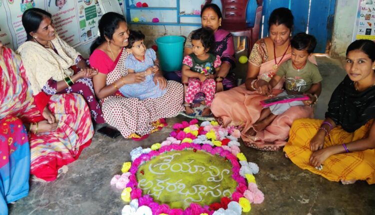 అంగన్వాడీ కేంద్రాల్లో అక్షరాభ్యాసాలు కొనసాగుతున్నాయి. సోమవారం ఐసిడిఎస్ సూపర్వైజర్ రమాదేవి ఆధ్వర్యంలో అక్షరాభ్యాసం నిర్వహించారు. ఈ సందర్భంగా సూపర్వైజర్ రమాదేవి మాట్లాడుతూ గర్భిణీలు, పిల్లలు ప్రభుత్వం అందించే పోషకాహారాన్ని తీసుకోవాలన్నారు. కార్యక్రమంలో అంగన్వాడి టీచర్ కుశ్నపల్లి మీనా, గర్భిణీలు, పిల్లలు పాల్గొన్నారు.