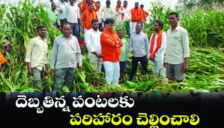 మంచిర్యాల జిల్లావ్యాప్తంగా ఇటీవల కురిసిన అకాల వర్షాల వల్ల నష్టపోయిన రైతులకు తక్షణమే నష్టపరిహారం చెల్లించాలని బీజేపీ మంచిర్యాల మాజీ జిల్లా అధ్యక్షుడు రఘునాథ్ వెరబెల్లి డిమాండ్ చేశారు. వర్షాల వల్ల నష్టపోయిన పంటలను ఆయన పరిశీలించారు. దండేపల్లి మండలం కొర్విచెల్మలో నేలకు ఒరిగి తీవ్ర నష్టం జరిగిన మక్క పంట పరిశీలించి, నష్టంపై రైతులను అడిగి తెలుసుకున్నారు. ఈ సందర్భంగా రఘునాథ్ మాట్లాడుతూ అకాల వర్షం వల్ల జిల్లా వ్యాప్తంగా పంటలకు నష్టం జరిగిందన్నారు. దాదాపు మూడు రోజులు అవుతున్న రాష్ట్ర ప్రభుత్వం నుండి నష్ట పరిహారంపై ఇప్పటి వరకు ఎలాంటి ప్రకటన చేయలేదన్నారు. ఎంత మేర నష్టం జరిగిందో కూడా ప్రభుత్వం ఎలాంటి సర్వే చేయకపోవడం శోచనీయమన్నారు.