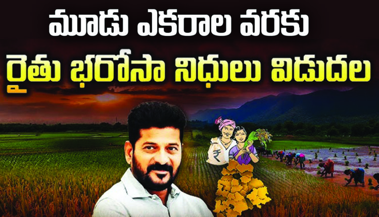 మూడు ఎకరాల వరకు రైతు భరోసా నిధులు విడుదల