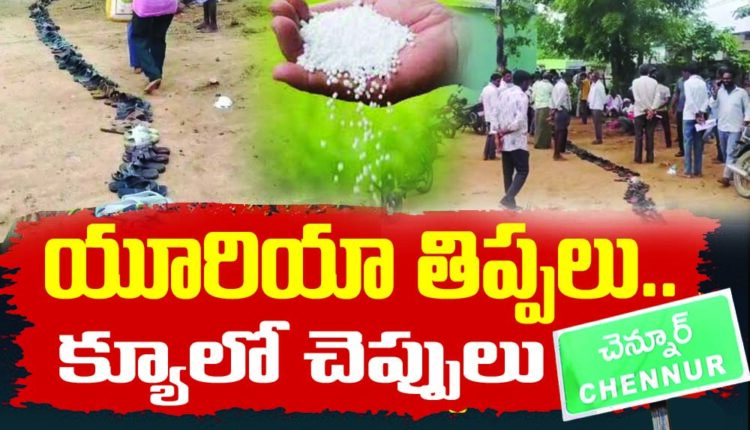 యూరియా తిప్పలు.. క్యూలో చెప్పులు..