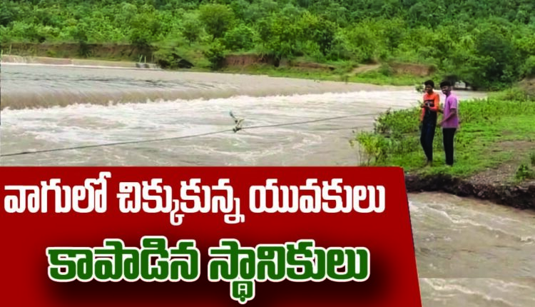 వ‌ర‌ద‌లో చిక్కుకున్న యువ‌కులు..