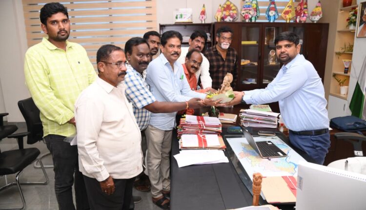 వినాయక చవితి పర్వదినాన్ని పురస్కరించుకొని మట్టి గణపతులను పూజించి పర్యావరణాన్ని కాపాడుకుందామని జిల్లా కలెక్టర్ కుమార్ దీపక్ అన్నారు. మంగళవారం కలెక్టర్ ఛాంబర్ లో టి.ఎన్.జి.ఓ. హౌసింగ్ బోర్డు కాలనీలో నూతనంగా ఏర్పాటు చేసిన సిద్ధి వినాయక మండలి ఆధ్వర్యంలో మట్టి వినాయకుడిని అందించి మట్టి వినాయకుని గోడప్రతులను ఆవిష్కరించారు. ఈ సందర్భంగా కలెక్టర్ మాట్లాడుతూ పర్యావరణ పరిరక్షణలో భాగంగా ప్రతి ఒక్కరూ మట్టి వినాయకులను పూజించాలన్నారు. కాలుష్యాన్ని నియంత్రించాలని తెలిపారు. పర్యావరణాన్ని కాపాడుకోవాల్సిన బాధ్యత అందరిపై ఉందని, మట్టి వినాయక విగ్రహాలను పంపిణీ చేస్తూ పర్యావరణంపై ప్రజలకు అవగాహన కల్పించాలని తెలిపారు. వివిధ రసాయనాలు, రంగులు ఉపయోగించి తయారు చేసే గణపతి విగ్రహాల కారణంగా పర్యావరణ సమతుల్యం దెబ్బతింటుందన్నారు. మట్టి వినాయకులను పూజించడం వల్ల పర్యావరణాన్ని పరిరక్షించడంతో పాటు సంస్కృతి, సాంప్రదాయాలను కాపాడుకోవచ్చని తెలిపారు. కార్యక్రమంలో మండలి ప్రతినిధులు గడియారం శ్రీహరి, గుండేటి యోగేశ్వర్, భూముల రామ్మోహన్, సైండ్ల మొండయ్య, పొన్న మల్లయ్య, శ్రీపతి బాబురావు తదితరులు పాల్గొన్నారు.
