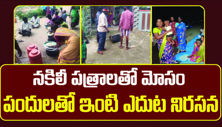 Protest with pigs in front of the house:నకిలీ భూమి పత్రాలు చూపించి నిరుపేదలైన అమాయకుల వద్ద రూ. 45 లక్షలు దండుకొని మోసం వ్యక్తులకు బాధితులు తగిన రీతిలో బుద్ధి చెప్పారు. పందులను ఇంట్లోకి తోలి ఇంటి ముందర నిరసన వ్యక్తం చేస్తున్నారు.