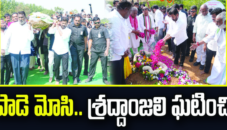 Andesri’s funeral:ప్రముఖ కవి, రచయిత, ఉద్యమ గొంతుక అందెశ్రీ (Ande Sri) పార్ధీవ దేహానికి తెలంగాణ ముఖ్యమంత్రి రేవంత్ రెడ్డి (CM Revanth Reddy) నివాళులర్పించారు. ఘట్కేసర్ చేరుకున్న సీఎం అందెశ్రీ అంత్యక్రియలకు హాజరయ్యారు. అంతిమయాత్రలో పాల్గొన్న ముఖ్యమంత్రి అందెశ్రీ పాడె మోశారు. వేలాదిగా తరలివచ్చిన అభిమానులు, సాహితీప్రియులు అక్షరయోధుడికి కడసారి వీడ్కోలు పలికారు. మొదట లాలాపేట్ జయశంకర్ స్టేడియం నుంచి తార్నాక, ఉప్పల్ మీదుగా ఘట్కేసర్ ఎన్ఎఎఫ్సీ నగర్ వరకు అంతిమ యాత్ర సాగింది. అందెశ్రీ సతీమణి మల్లుబాయి, కుమార్తెలు వాక్కులమ్మ, వెన్నెల, వేకువ, కుమారుడు దత్తు సంప్రదాయం పద్ధతిలో కర్మకాండలను నిర్వహించగా, అధికారిక లాంఛనాలతో అందెశ్రీ అంత్యక్రియలు పూర్తయ్యాయి.