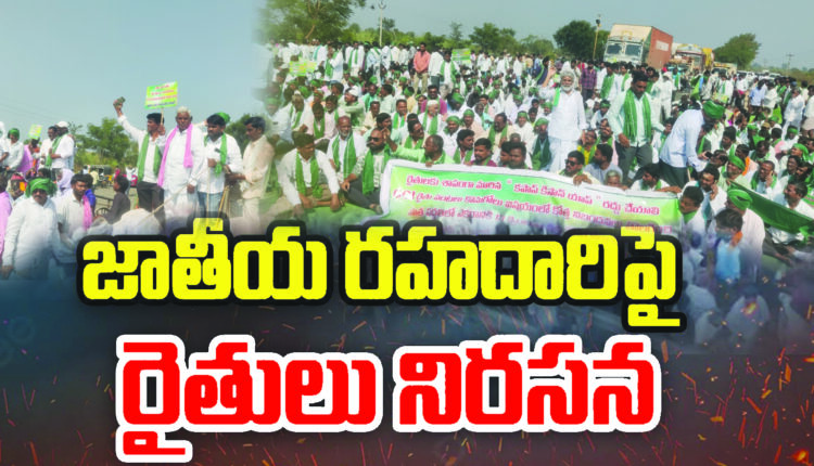 Farmers’ protest on the national highway:సీసీఐ(CCI) నిబంధనలు తొలగించాలంటూ రైతులు జాతీయ రహదారిపై బైఠాయించారు. నిబంధనల పేరుతో రైతులను నానా ఇబ్బందులకు గురి చేస్తున్నారంటూ ఆవేదన వ్యక్తం చేశారు. ఆదిలాబాద్ జిల్లాలోని బోరజ్(Adilabad district Boraj) జాతీయ రహదారిపై రైతుల నిరసనకు దిగారు. వెంటనే రైతుల సమస్యలు పరిష్కరించాలని అఖిల పక్షం నాయకుల డిమాండ్ చేస్తూ ఆందోళన వ్యక్తం చేశారు. వెంటనే సీసీఐ నిబంధనలు తొలగించాలన్నారు.