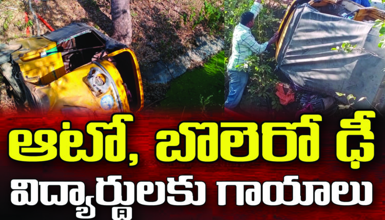 ఆటో బొలెరో ఢీ, విద్యార్థులకు గాయాలు