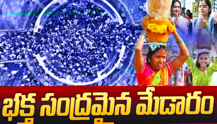 Medaram:ములుగు జిల్లా తాడ్వాయి మండలం మేడారం సమ్మక్క-సారలమ్మ వనదేవతలను దర్శించుకునేందుకు భక్తులు పెద్ద ఎత్తున తరలివస్తున్నారు. జాతర సమయం దగ్గర పడుతుండటం, సంక్రాంతి సెలవులు కూడా ముగుస్తుండటంతో భారీగా జనసందోహం పెరిగింది. ఒక్క శుక్రవారమే దాదాపు పది లక్షల మంది భక్తులు మొక్కులు చెల్లించుకున్నారు. సమ్మక్క-సారలమ్మకు నిలువెత్తు బంగారాన్ని సమర్పిస్తున్నారు. సంక్రాంతి పండుగకు వచ్చిన వారంతా మేడారం తరలివచ్చారు. తెలుగు రాష్ట్రాలతో పాటు ఛత్తీస్గఢ్, ఒడిశా, మహారాష్ట్ర నుంచి లక్షలాది మంది భక్తులు తరలివచ్చి అమ్మవార్లను దర్శించుకున్నారు.