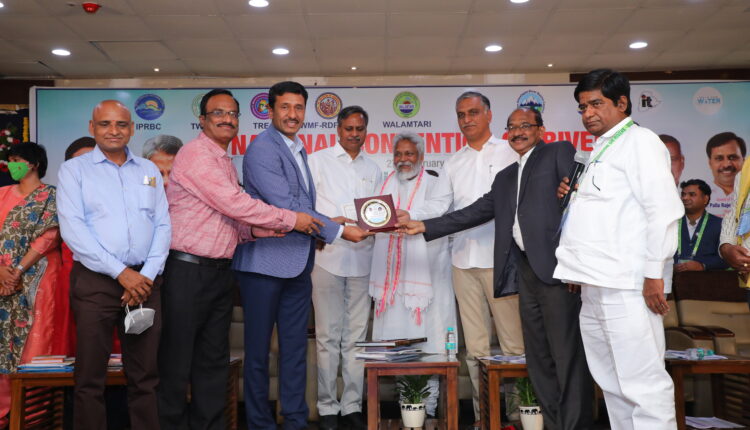 -మంత్రి హరీశ్ రావు చేతుల మీదుగా అందుకున్న డైరెక్ట‌ర్ బ‌ల‌రామ్‌, జీఎం(కో ఆర్డినేష‌న్‌) సూర్య‌నారాయ‌ణ‌