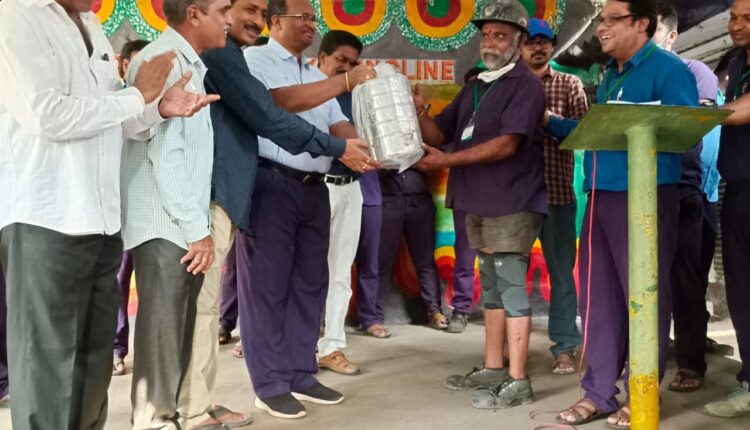 -కేకే1 గనిలో కార్మికులకు బహుమతులు అందచేత