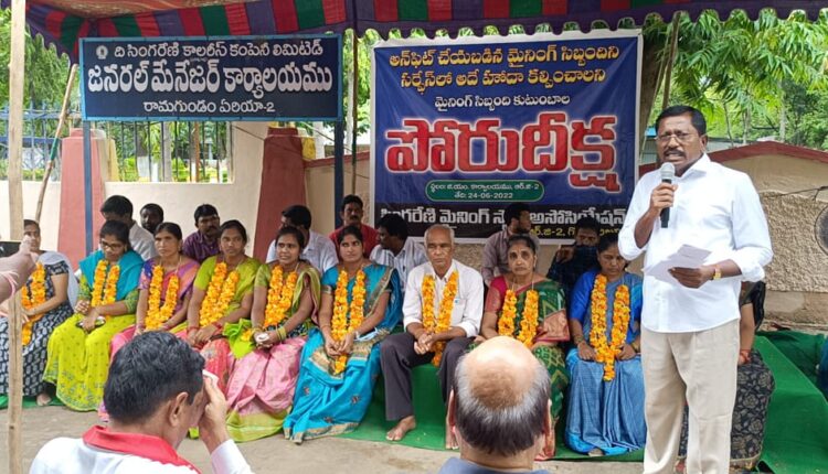 కుటుంబాలతో సహా మైనింగ్ ఉద్యోగుల పోరుదీక్ష