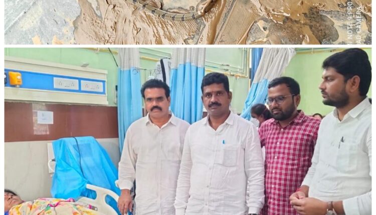 మంచిర్యాల జిల్లా కేంద్రంలో గోదావరి వరదలో మునిగిన మాతాశిశు ఆసుపత్రిలో దారుణం చోటు చేసుకుంది. బురదమయం అయిన ఆసుపత్రిని శుభ్ర పరుస్తున్న పారిశుధ్య కార్మికురాలిని పాముకాటు వేసింది. బాధితురాలు సునీత పరిస్థితి విషమంగా ఉంది. చికిత్స నిమిత్తం జిల్లా ఆసుపత్రికి తరలించారు.ఇటీవలి వరదలకు గోదావరి ఒడ్డునే ఉన్న ఆసుపత్రి నీట మునిగింది. ఈ క్రమంలో ఆసుపత్రి మొత్తం దెబ్బతింది. బయట నుంచి పెద్ద సంఖ్యలో పాములు ఆసుపత్రిలోకి వచ్చాయి. ఆసుపత్రిలో ఇంకా పాములు ఉన్నాయని కార్మికులు వాపోతున్నారు.వరదల వల్ల మాత శిశు ఆసుపత్రిలో పేరుకుపోయిన చెత్త,పాము కాటుకు గురైన కాంట్రాక్టు ఉద్యోగిని కాంగ్రెస్ పార్టీ నాయకులు పరామర్శించారు. మంచిర్యాల పట్టణ అధ్యక్షుడు తూముల నరేష్, బ్లాక్ కాంగ్రెస్ అద్యక్షుడు పూదరి తిరుపతి, డిప్యూటీ ఫ్లోర్ లీడర్ మాజిద్, నాయకులు నాయకిని సురేందర్, అభి పాల్గొన్నారు.