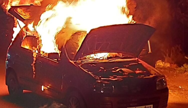 పెండ్లి కొడుకు ప్ర‌యాణిస్తున్న కారు ద‌గ్దం