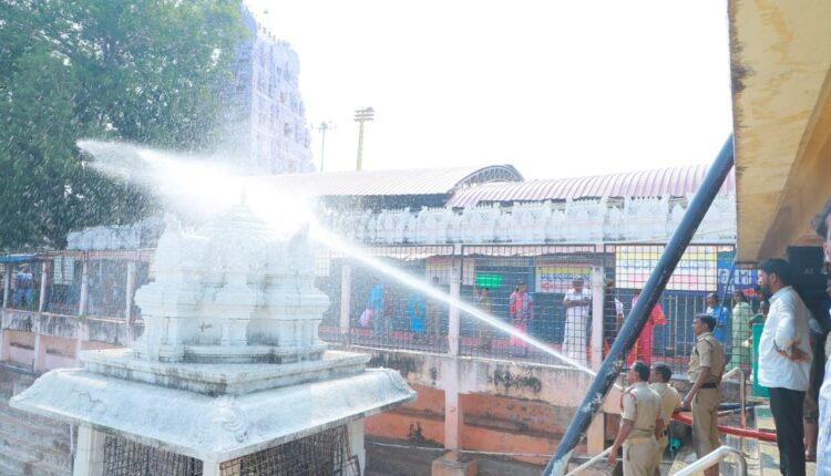 Vemulawada Rajanna Temple: రాజన్న భక్తులు ఎన్నో రోజులుగా ఎదురుచూస్తున్న కోనేరు స్నానాల కల ఈ నెల నాలుగు నుంచి నెరవేరనుంది. దాదాపు రెండేళ్లుగా ఈ ధర్మగుండాన్ని మూసివేశారు. గురువారం రాజన్న ఆలయ ధర్మ గుండాన్ని, అందులోని మండపాలను, మెట్లను ఆలయ సిబ్బంది, ఫైర్ సిబ్బంది కలిసి శుభ్రం చేశారు. ఈ నెల నాలుగు నుంచి దానిని పునఃప్రారంభించేందుకు అధికారులు పూర్తి స్థాయిలో సన్నాహాలు చేశారు.