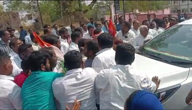 -కారు అద్దాలు ధ్వంసం, నేతలకు స్వల్ప గాయాలు