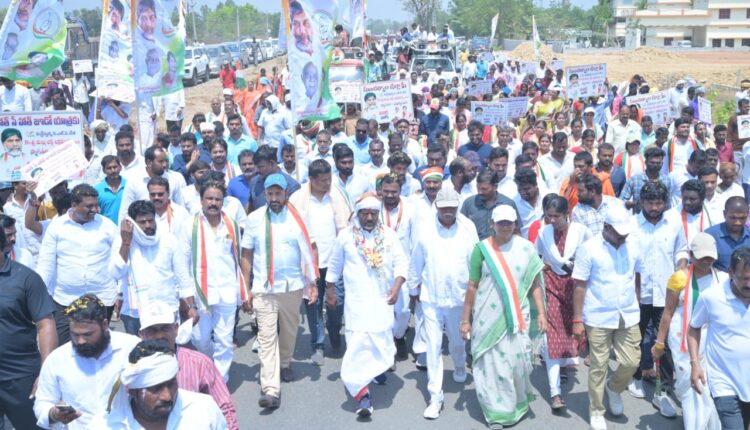 పాద‌యాత్ర‌లో ఆయ‌న‌తో పాటు జిల్లా కాంగ్రెస్ పార్టీ అధ్య‌క్షురాలు కొక్కిరాల సురేఖ‌, మాజీ ఎమ్మెల్సీ ప్రేంసాగ‌ర్ రావు త‌దిత‌రులు పాల్గొన్నారు.